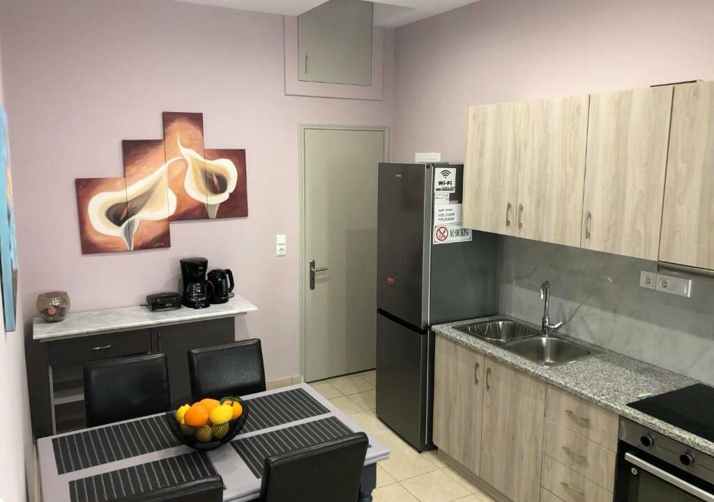 Полностью оборудованная кухня με ψυγείο, καφετιέρα, φούρνο και όλα τα μαγειρικά σκεύη
